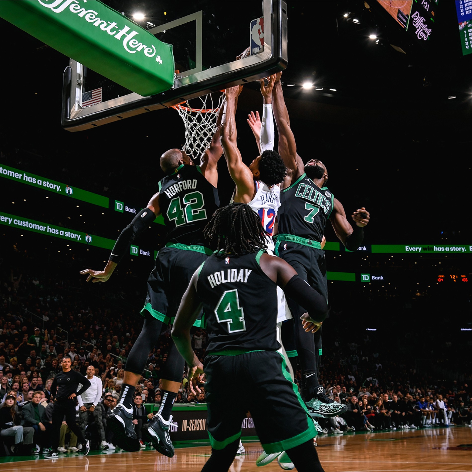 The slogan comes from an organization that prides itself on being different — in its culture, its definition of success, and the unique atmosphere inside and outside TD Garden. For the lettering, we drew inspiration from vintage Celtics ads and apparel, with one playful script from a 1950s NBA radio guide standing out. Since the Celtics brand usually leans on sans-serif type, using a script created a bold, fitting contrast for the slogan, “Different Here.” Positive fan reactions to past script styles also confirmed this direction. The flowing, rhythmic forms reflect the teamwork, fluidity, and speed the players bring to the court. This mark is here to stay.