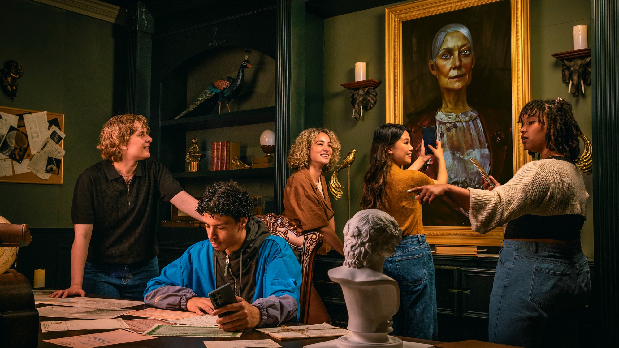 The Winchester Conundrum is an eight-player experience where guests use the new phone and Google’s Circle to Search feature to solve Winchester’s riddles and beat the game. Inside the room, they encounter the living portrait of the late heiress, Winifred Willoughby Winchester, who challenges them to unravel the mystery of her final will. Voiced and controlled live by a backstage performer, Winifred interacts with guests in real time — guiding, teasing, and pushing them toward the solution. We designed the brand and marketing for the event, drawing inspiration from classic mystery novels and films while finding moments to highlight Google's circle to Search feature.